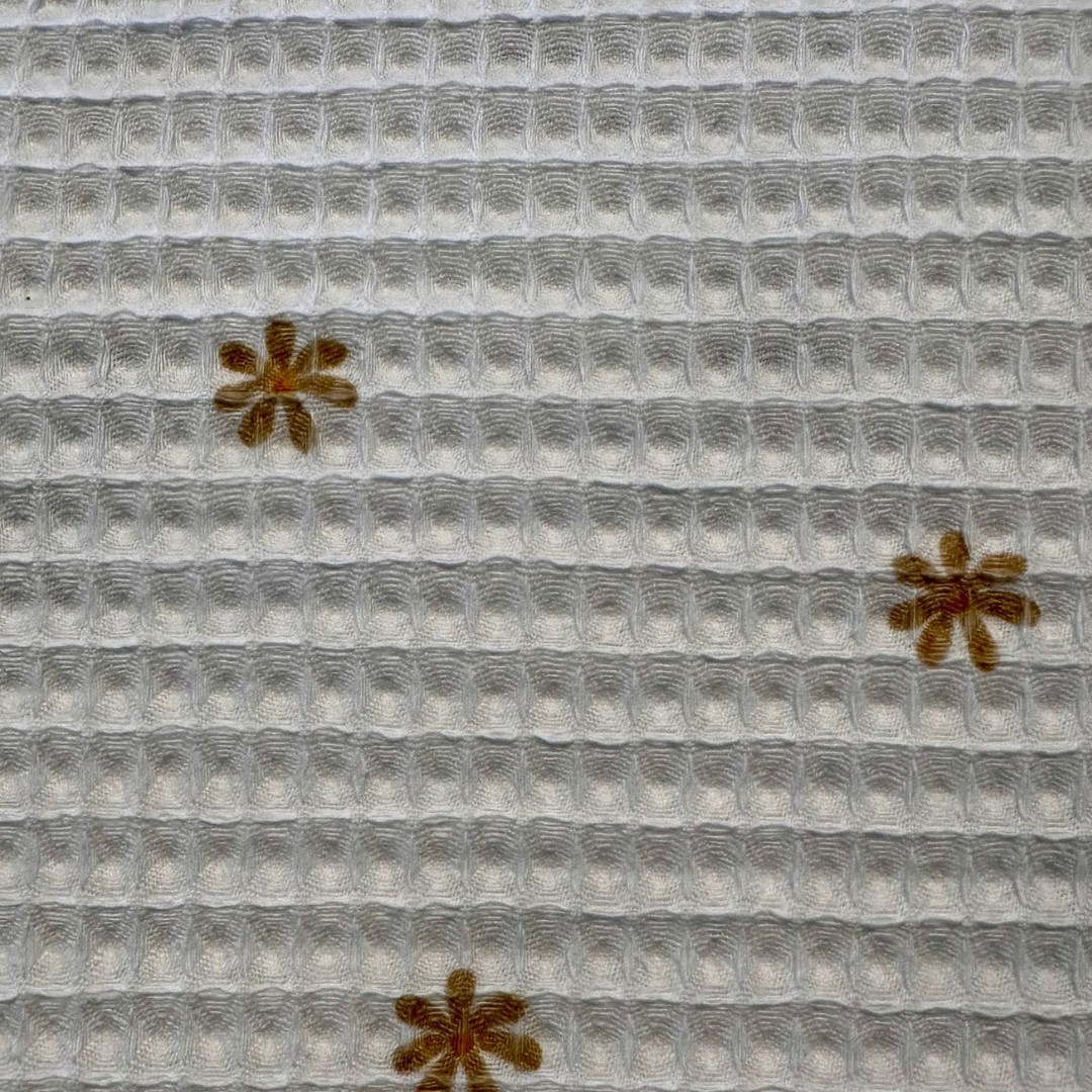 Waffle Piquet com textura fofinha e confortável ao toque. Tecido texturado com efeito waffle absorvente, especialmente indicado para confeção de roupa de criança, roupa de cama, acessórios de bebé, mantinhas, bolsas, mochilas, etc.