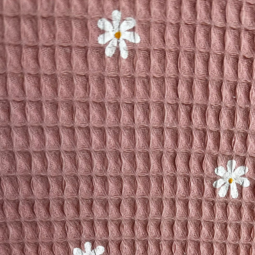 Waffle Piquet com textura fofinha e confortável ao toque. Tecido texturado com efeito waffle absorvente, especialmente indicado para confeção de roupa de criança, roupa de cama, acessórios de bebé, mantinhas, bolsas, mochilas, etc.